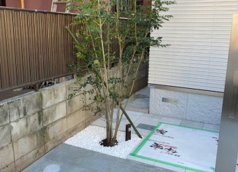 砂利スペースをコンクリート舗装し、美しい樹木を植えた外構工事 施工内容:今回のご依頼は、砂利敷きのス...
